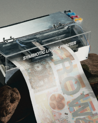 Living bio-inks combining fungi and bacteria to create self-decomposing, regenerative prints.