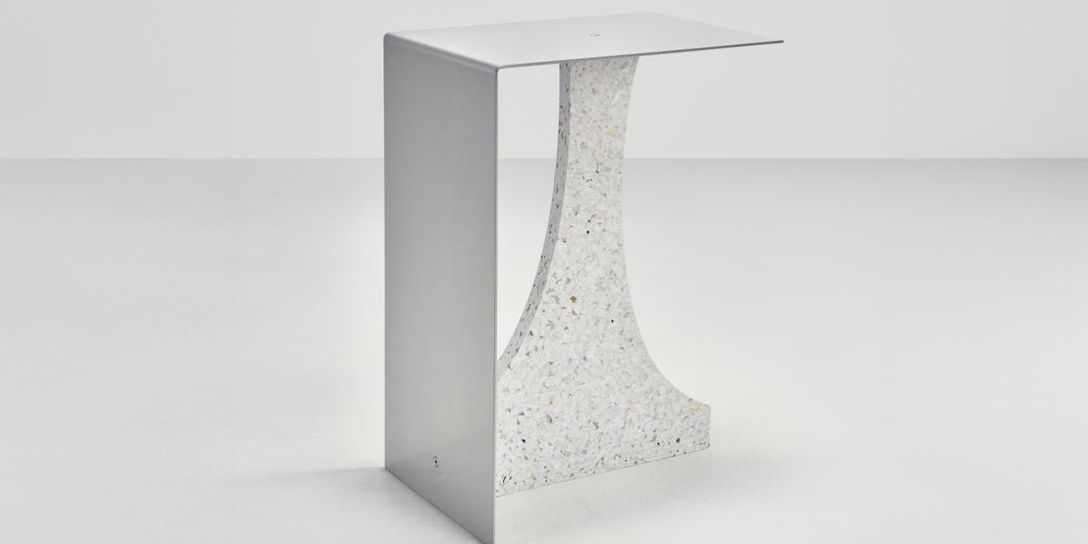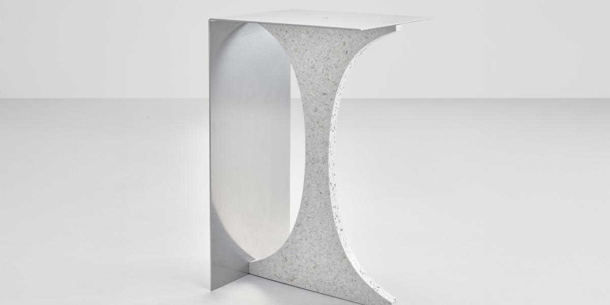 Designer Philip Bogaerts explores sustainable design with the Mohs Armchair & Echo Side Tables. The Mohs Armchair embodies Dutch minimalism, designed with a view to the future, to separate or repair materials, while the Echo Side Tables are an experimental project crafted from playful offcuts of recycled rest material from the Bogaerts Butler table collection. The half-round cuts of the original sheets leave organic shapes, which become the basis for the Echo tables. The name Echo reflects how these shapes resonate as a lingering reinterpretation. Together, they create a dialogue between structure and flow, waste and value.