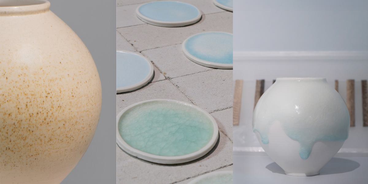 The blue is not decoration but a record moving from inside matter to the surface. The exhibition presents the flow from bone to ash to clay/glaze, samples before/after firing, test tiles, and finished objects.