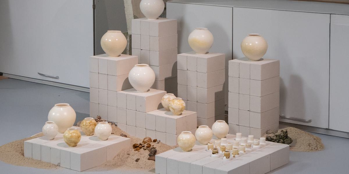 The work adopts the Moon Jar. Its round body evokes the moon and its cycle—the source of the name. In Korea it is a vessel for storage and fermentation, where nature’s time meets human culture.