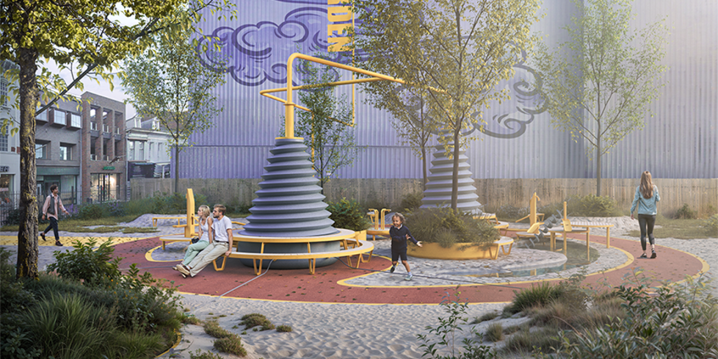 This innovative, interactive installation collects and stores rainwater, making it available for everyday use—from watering green spaces to washing bicycles or even creating playful water features. At the same time, it creates a vibrant meeting place where people gather to work, have lunch, or simply enjoy the surroundings. Raincafé not only demonstrates how water can be managed intelligently but also encourages discussion and awareness: about how we use natural resources, both in the city and beyond. It's more than just a technical solution.