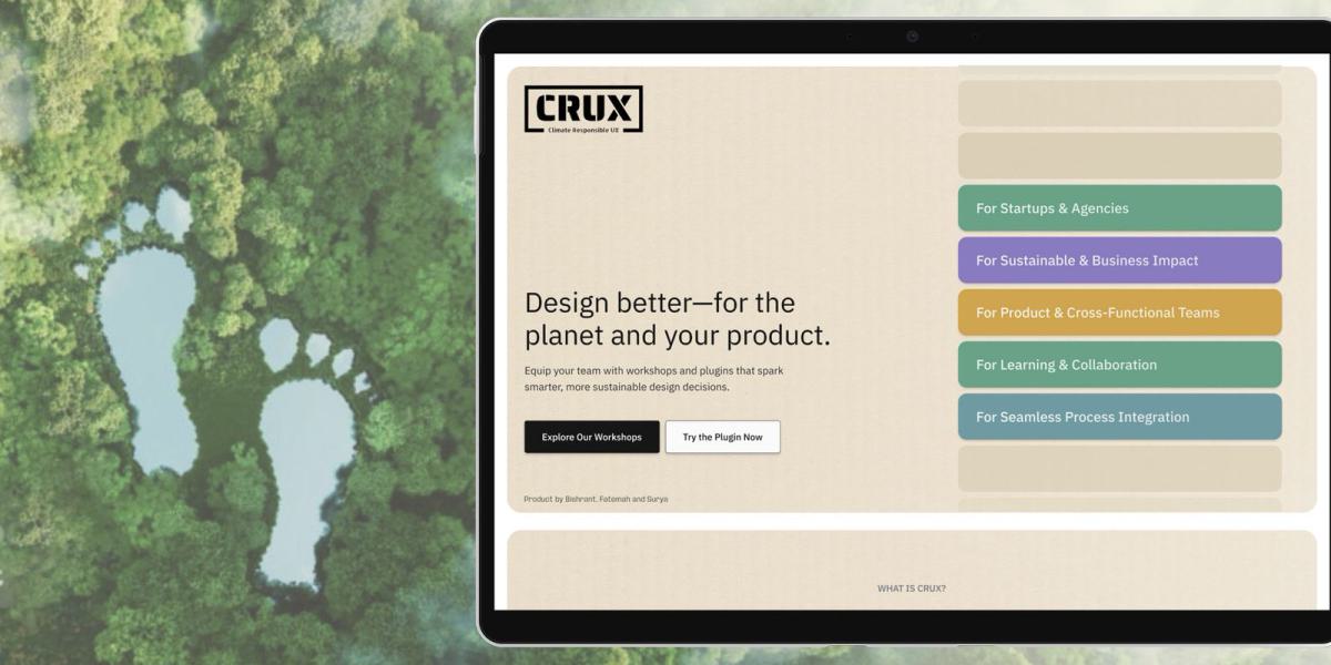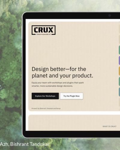 CRUX is a digital sustainability toolkit designed for design agencies and product teams. It combines two interactive workshops with a plugin prototype that estimates COâ‚‚ emissions of digital products and helps teams evaluate the environmental impact of their projects.