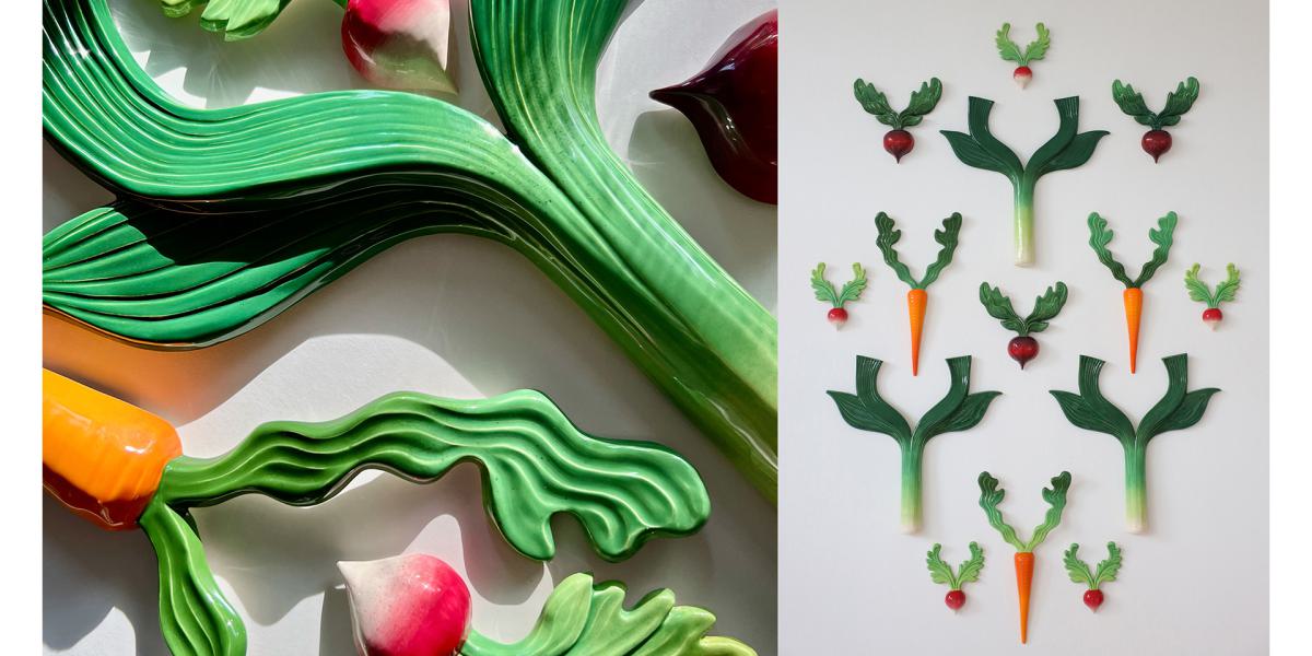 At Dutch Design Week 2025, Veggies on the Wall is expanded with two new works. Inspired by the first collection, but with a slightly different twist. Come see them at Design Perron.