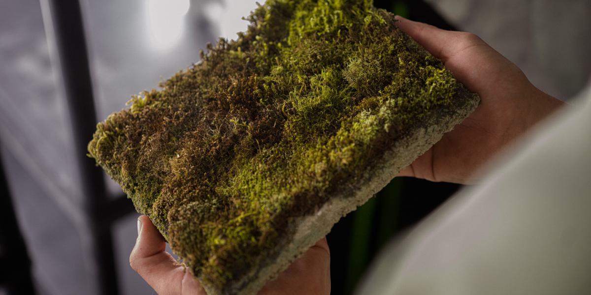 Respyre is developing moss concrete: an innovative building material where living mosses grow on concrete facades. Moss is not only beautiful and low maintenance, but it also purifies the air, cools the environment, and gives small insects a place to live.