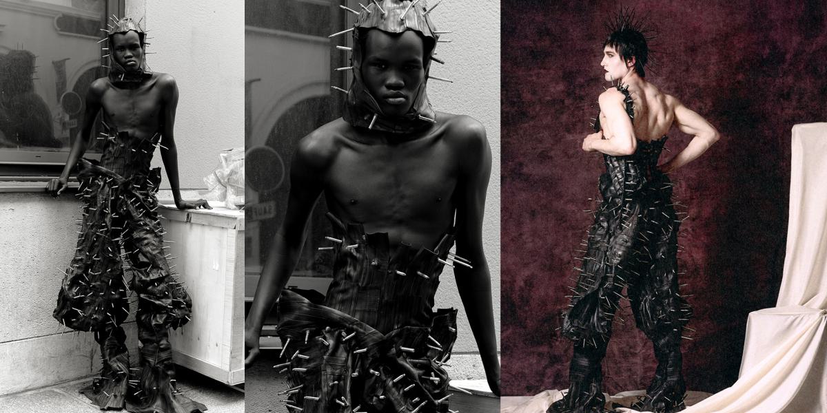 Exploring the body and human form using the tension between the natural, industrial and historical. Nature, mythology and human forms collide. The way in which industrial materials can take on humanoid forms and seem to be undetectable in this world full of industrialization. My designs mimicking decaying skin which signifies the human hopefulness in technology and industrialization that tends to ultimately lead to the decay of matter over time.