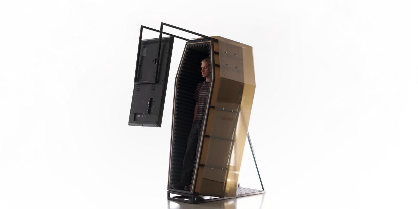 De installatie bestaat uit een kistachtige, verticale stoel, waar sensoren de video-essay activeren. Deze setting roept zowel het gevoel van een medisch, als van een ritueel apparaat op, en dompelt de deelnemer onder in een ruimte waar veroudering, data labor en sociale media samenvallen in de cloudinfrastructuur. Wordt het lichaam in Technosferatu een bijproduct, een patiënt, een werknemer of een experiment?