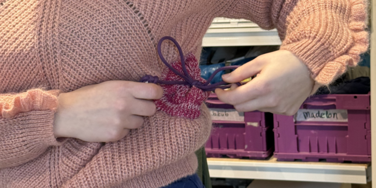 Door te werken met afgekeurde truien van Het Goed en restmonsters van het Knitwear Lab, ontwikkelde ik een methode van flaw-based cutting, waarbij beschadigde onderdelen worden verwijderd, en herbreien. Door traditionele bewerkingstechnieken, oorspronkelijk bedoeld voor versiering of afwerking, op een nieuwe manier toe te passen, reconstrueer ik gefragmenteerde kledingstukken tot nieuwe, aanpasbare ontwerpen.