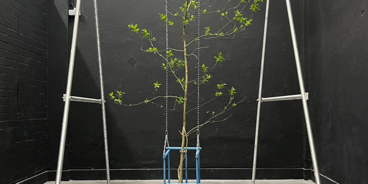 De schommel, een symbool van zorgeloosheid, zorg en onschuld, wordt zo een plek van spanning waar comfort en ongemak in evenwicht worden gehouden. Door de boom in deze speelse maar beperkende structuur te verankeren, benadrukt de installatie de tegenstrijdigheden in de menselijke pogingen om de natuur te koesteren en tegelijk te beheersen.