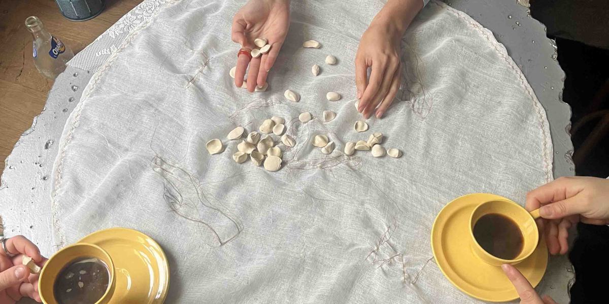 "Kafetzou" is een project van Silvr, geworteld in een jeugdherinnering aan vrouwen rond een keukentafel. Het reactiveert de traditie van het Griekse koffielezen als een praktijk van aanwezigheid, zorg en verhalen vertellen.