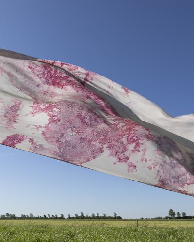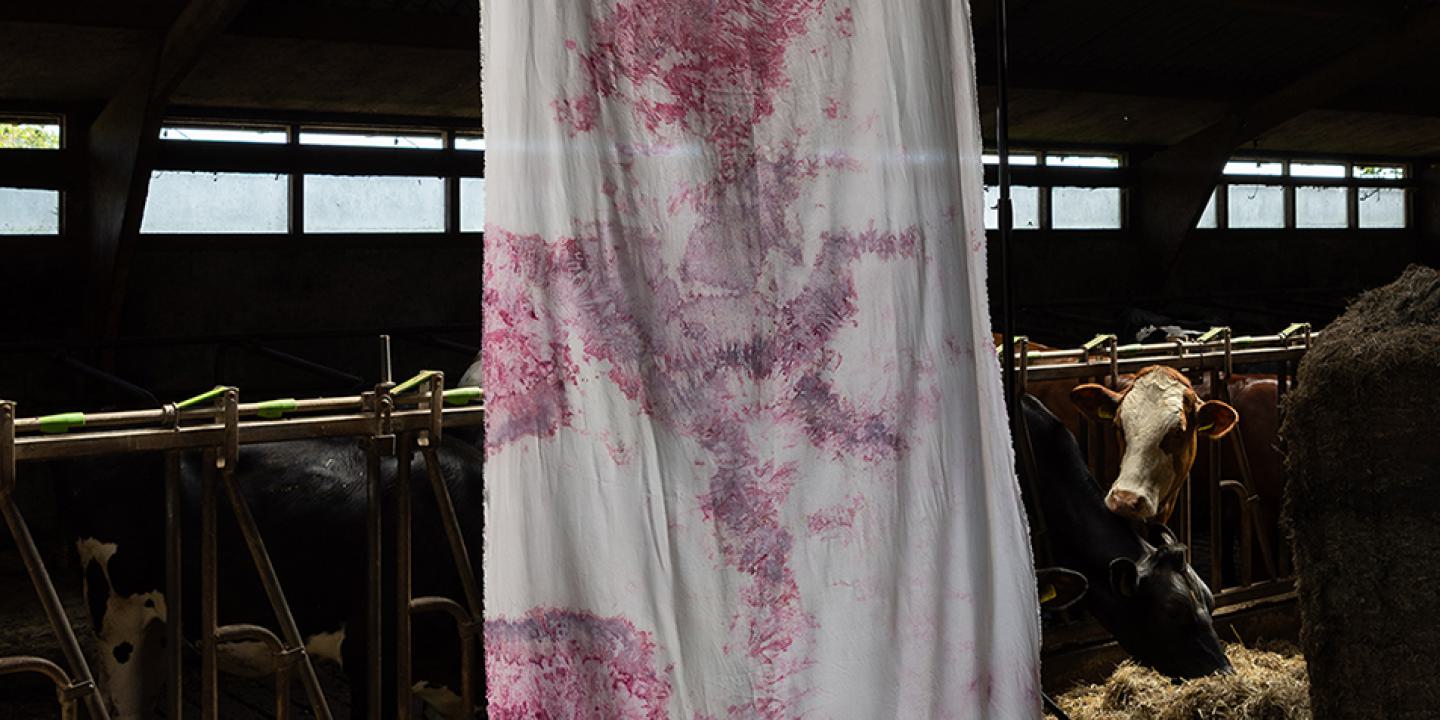 Veenweide Atelier werkt met Faber Futures samen met Friese boeren, wetenschappers en textielmakers. Ze gebruiken lokale pigment-producerende bacteriƫn die gevoed worden met landbouwafval en restwarmte. Het project pioniert met circulaire bioproductie op boerderijen in Friesland.