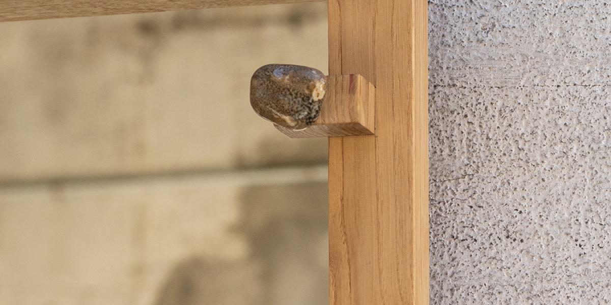 Formeel dagen deze werken de conventies van het westerse design uit, waarin verbindingen meestal worden verborgen in de zoektocht naar naadloze perfectie. In plaats daarvan overdrijf en vier ik de verbindingen: bij de kleinere plank door keramische elementen toe te voegen die de verbindingen zichtbaar en tastbaar maken; bij de grotere door sculpturale houten wiggen te gebruiken die een structurele noodzaak omvormen tot een expressief gebaar. Deze keuzes transformeren constructiedetails tot metaforen voor menselijke relaties — zichtbaar, imperfect en essentieel.