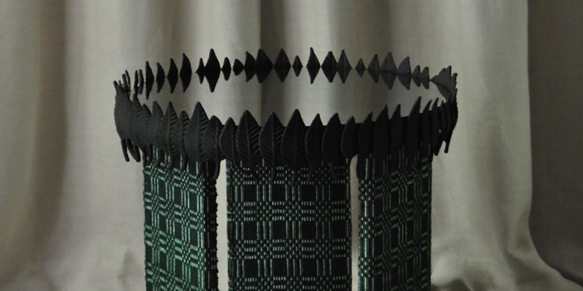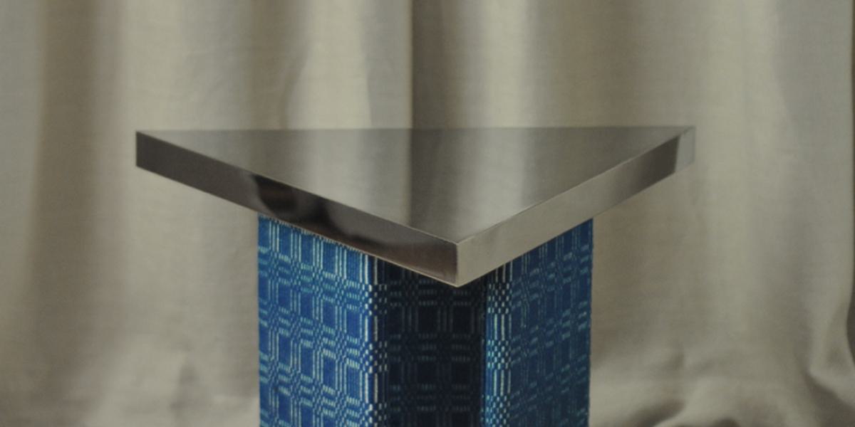 Deze collectie is geïnspireerd op de geometrie van geboortehoroscopen en de hoeksverhoudingen tussen planeten, die in de astrologie krachtige energieën vertegenwoordigen. Ze onderzoekt de spanning tussen verticale en horizontale vlakken, vertaald in contrasterende materialen: strak staal en tactiele, natuurlijke wol. Deze serie bijzettafels gebruikt eenvoudige geometrische vormen om symbolische betekenissen over te brengen, waarbij structuur, materialiteit en esoterische verwijzingen in balans zijn. De driehoek belichaamt evenwicht en flow, het vierkant verkent spanning en antagonisme via het verschoven tafelblad en de poten, en de cirkel staat voor eenheid en harmonie. De perfecte vorm is verfraaid met handgehammereerde metalen bladeren, ook beschikbaar als cirkelvormige spiegel. Bekleding op de poten met een subtiel traditioneel geometrisch patroon in primaire kleuren verenigt de collectie en versterkt visuele stabiliteit en eenvoud, terwijl materialiteit en symboliek verbonden blijven.
