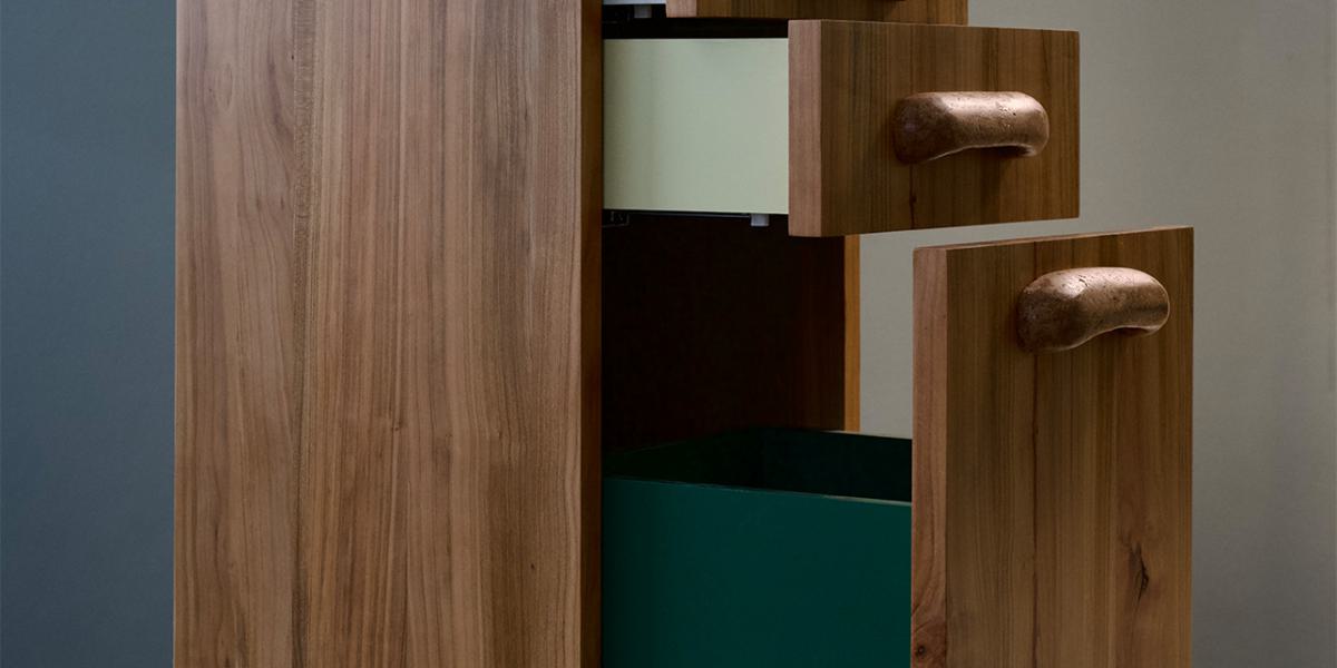 Door het nauwgezette vakmanschap van traditionele timmerkunst te combineren met de intuïtieve techniek van beeldhouwen in houtklei, is deze meubel-sculptuurserie strak en functioneel, maar ook speels en expressief.