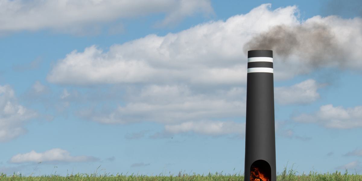 Info: Met deze industriële schoorsteen kunnen we zelf bepalen waar hij staat en wanneer hij rook afgeeft. Op een hoogte van 2,4 meter zorgt hij ervoor dat de rook van het kampvuur niet in je gezicht blaast. Zo kun je je volledig richten op het spektakel van de rokende mini-schoorsteen of marshmallows roosteren.